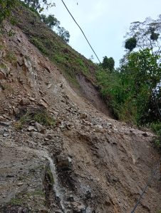 ● Deslizamiento en la vía de la vereda Alto del Carmen, con taponamiento en tres puntos y cierre total de la vía.
