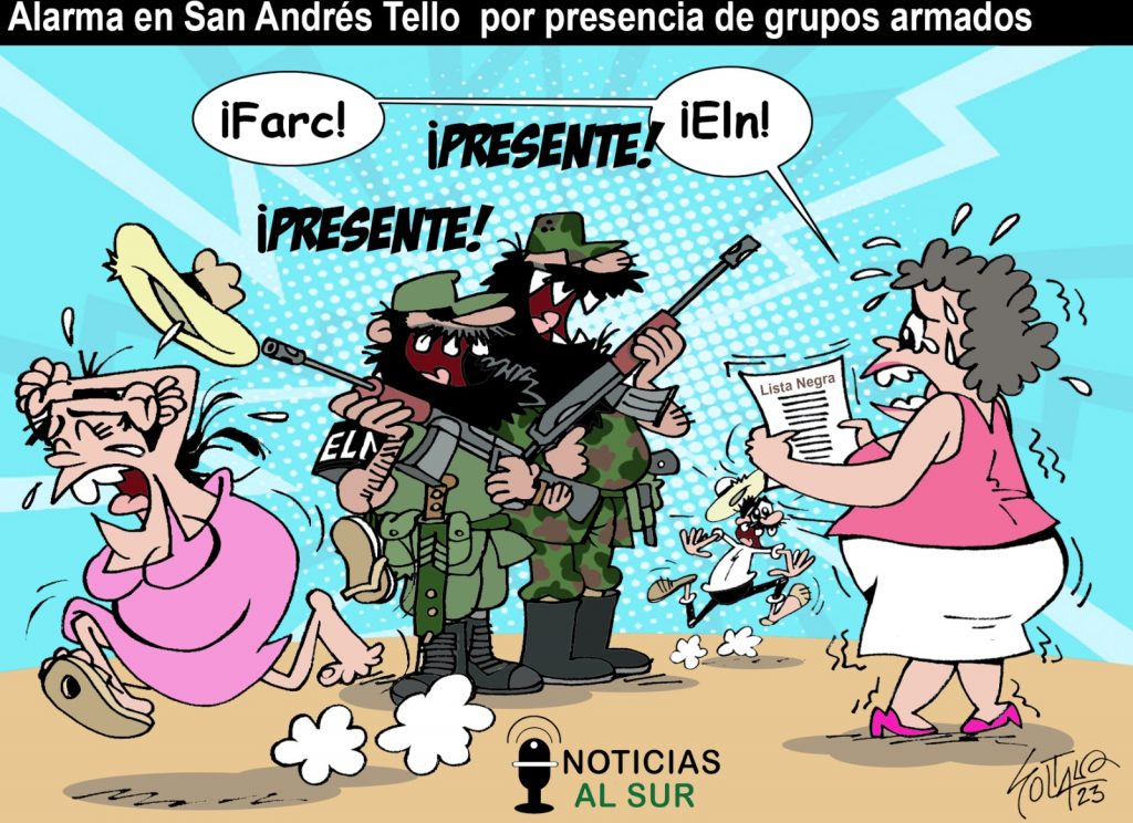 En la Caricatura de la Semana de Jorge Soltau en https://noticiasalsur.co/ … Alarma en San Andrés, Tello, por presencia de grupos armados