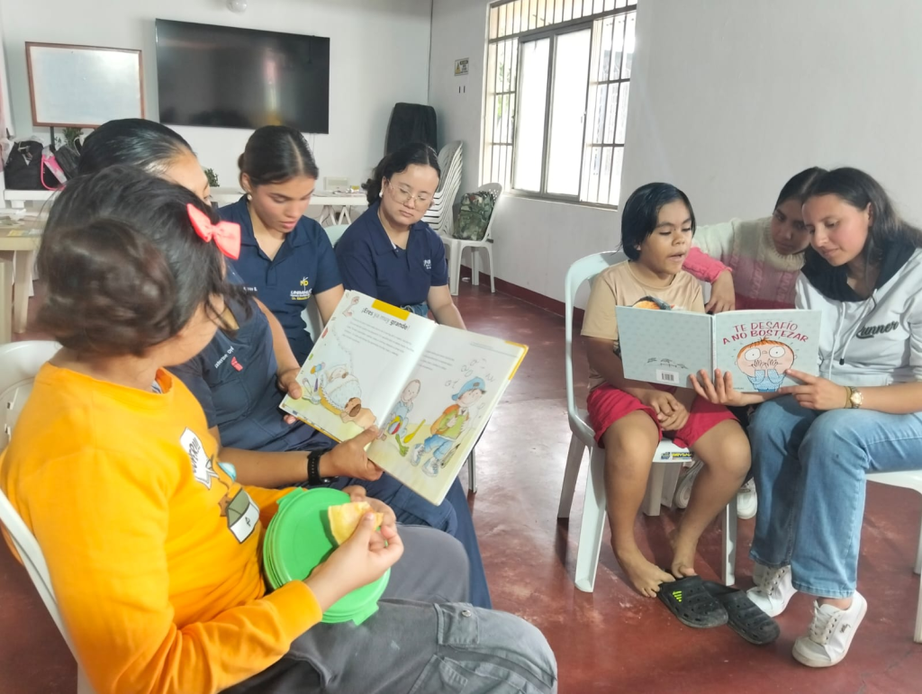 La jornada no fue una clase tradicional. Fue, más bien, un encuentro cercano en el que la lectura se convirtió en puente para hablar de temas esenciales para el desarrollo integral de la niñez: la alimentación saludable y la higiene del sueño. Desde una narrativa sencilla y dinámica, niños y niñas de la comunidad participaron activamente en actividades diseñadas para aprender jugando, reflexionar y reconocerse como protagonistas del cuidado de su propio bienestar.