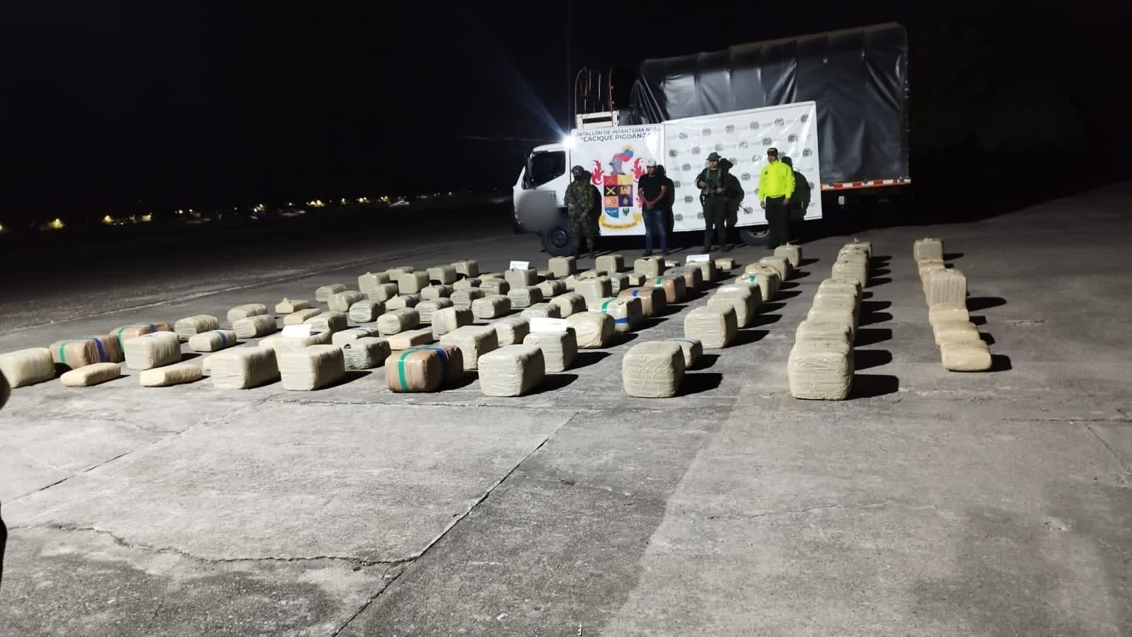 Ejército Nacional logró la incautación de 831 kilos de marihuana en el municipio de Nátaga, Huila. Este importante decomiso se produjo cuando tropas del Batallón de Infantería N.° 26 Cacique Pigoanza de la Novena Brigada adelantaban un puesto de control en la vía que comunica a Ataibe, Cauca, con Nátaga, en el suroccidente del departamento. Allí, en un trabajo coordinado con Policía Antinarcóticos, inmovilizaron el vehículo en el que transportaban 98 paquetes con el alcaloide, con un peso aproximado de 831 kilogramos de marihuana.