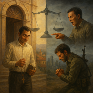 Satanizar a las personas que suscribieron el proceso de paz, es un desconocimiento del derecho (su justicia transicional y las sanciones contempladas), pretender que el proceso debe terminar en larga condena y restauración económica, es desconocer el derecho internacional, en ocasiones, hasta los más recalcitrantes opositores han expresado que “prefieren un guerrillero desmovilizado a un guerrillero en armas”; No obstante, otras personas, insisten, saliendo del templo, luego de una homilía y acabando de rezar y expresar ante Dios: …perdona nuestras ofensas, como también nosotros perdonamos…” no dudan en recordarle a sus cercanos, allegados y publico en general, que no debemos perdonar, que es necesario, cobrar (y con creces) a todo aquel que hubiera tenido una vida no digna ni correcta.
