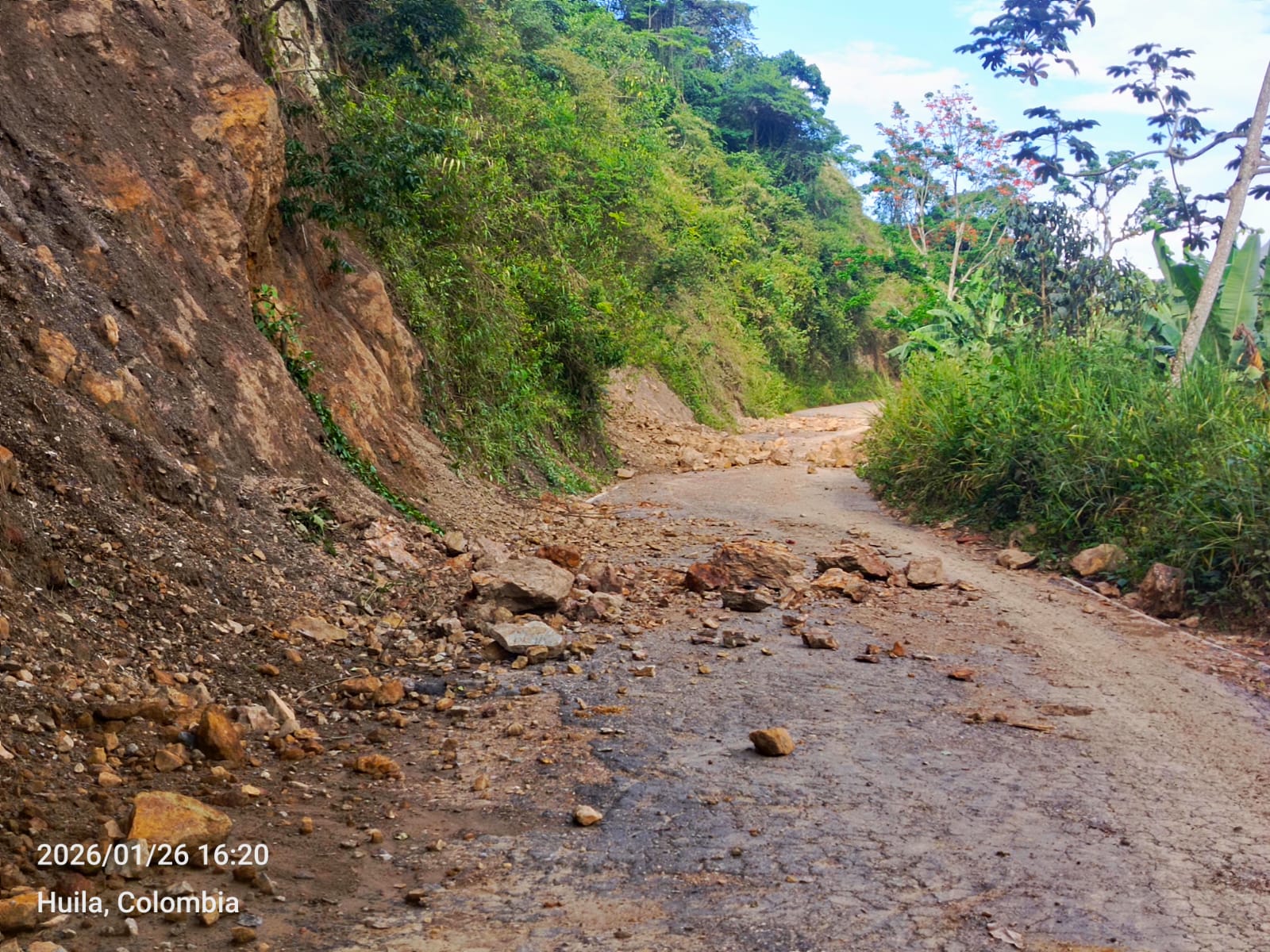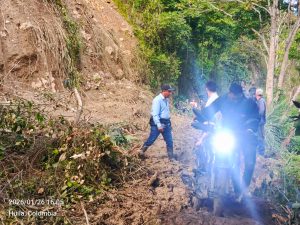 ● Creciente súbita – Quebrada Boquerón, vía Tello–San Andrés: la vía fue habilitada y se recomienda transitar con precaución.