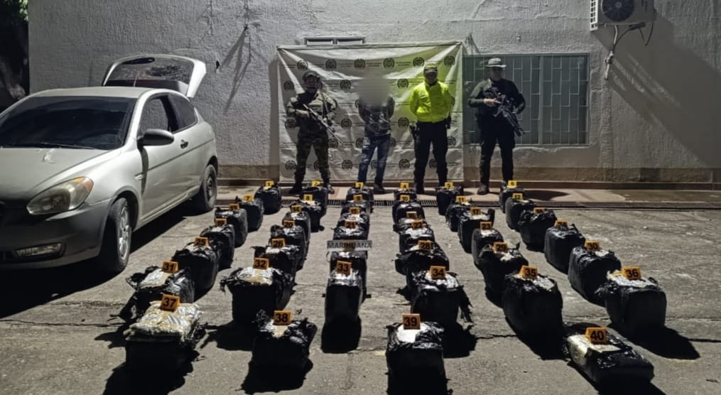 En el procedimiento de registro del automotor se hallaron 40 paquetes rectangulares envueltos en papel vinipel negro, los cuales contenían una sustancia con características propias de la marihuana. Esta sustancia estaría avaluada en 301 millones de pesos aproximadamente en el mercado ilícito. El capturado y el material incautado quedaron a disposición de las autoridades competentes. Esta persona deberá responder por los delitos de tráfico, fabricación o porte de estupefacientes.