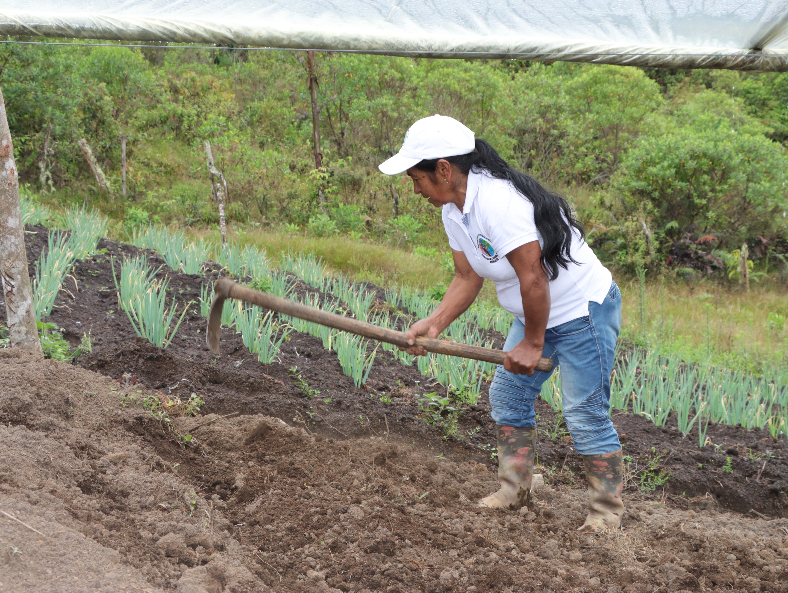 Ricardina Anacona, también beneficiaria, agrega: “Hemos recibido acompañamiento técnico, mangueras, semillas, plásticos, abono y eso nos ayuda a trabajar mejor sin afectar la naturaleza”.