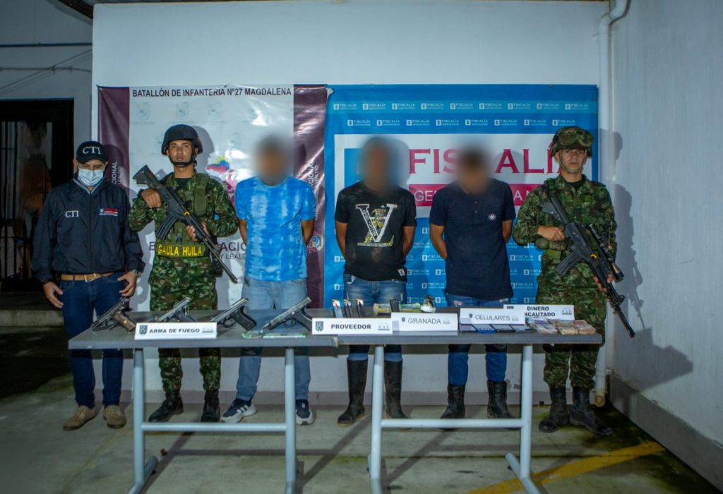 Al verse doblegados por la autoridad militar, uno de los sujetos lanzó una granada, con la que se lesionó. Es así como la rápida reacción de las tropas permitió capturar a tres hombres y aprehender a un menor de edad, procediendo a prestar los primeros auxilios al sujeto herido, y, posteriormente, fueron puestos a disposición del CTI de la Fiscalía.