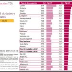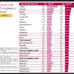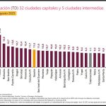 Las ciudades que presentaron mayores tasas de desocupación para este periodo fueron: Quibdó (24,4%) con una diferencia de –1,1 p.p. respecto al mismo periodo del 2024 (25,5%), seguido de Riohacha (14,2%) e Ibagué (12,5%). En contraste, las ciudades que mostraron menores tasas de desocupación fueron: Medellín A.M. (6,4%), Villavicencio (7,3%) y Cali A.M. (7,8%).