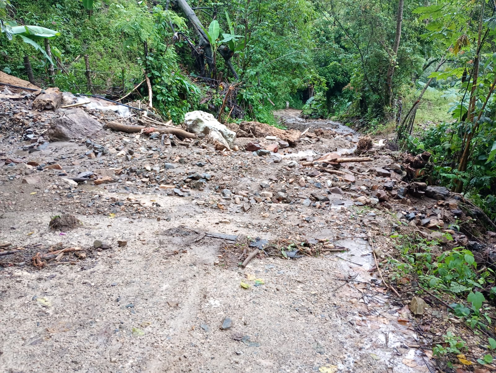 Un deslizamiento en la vereda Limo Santa Clara, centro poblado Naranjal, provocó la pérdida de banca vial y cierre total de la vía terciaria.