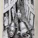 De esta experiencia surge su primer cuento “Gallo Cantor” que sale a la luz en la primera publicación de La paz de los Carteles en 1968. Después viene Tres puntos en la Tierra en 1973 y Los cazadores en el año 1981. Y justamente, este libro le da el insumo a Patricia Tafur, de rendirle un homenaje testimonial a su padre en los 40 años de su desaparición física, a través de la serie “Los Cazadores”. Y en la prolongación de este persistente arte testimonial, la colección de “Los cazadores”, Patricia rinde justo y emocionante homenaje a su padre, alma transparente y cuerpo trashumante, autor del libro canónico La paz de los carteles, publicado en 1968, en donde revive los cuerpos y las almas de las innumerables víctimas de la violencia de los años 50 en el Tolima Grande