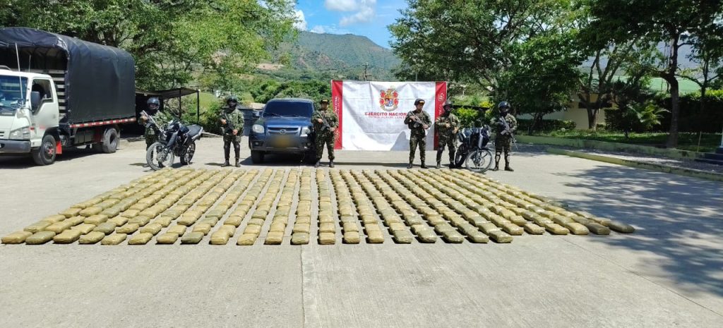 En desarrollo de operaciones militares orientadas a debilitar las economías ilícitas, tropas del Batallón de Infantería Liviana N.° 26 “Cacique Pigoanza”, orgánico de la Novena Brigada del Ejército Nacional, lograron la incautación de más de media tonelada de marihuana en zona rural del municipio de Tesalia, en el occidente del departamento del Huila.