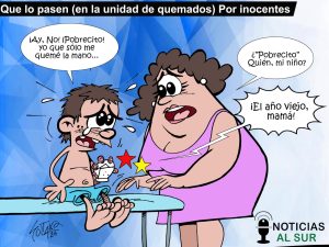 Que lo pasen (en la unidad de quemados) por inocentes… caricatura de la semana de Soltau en https://noticiasalsur.co/