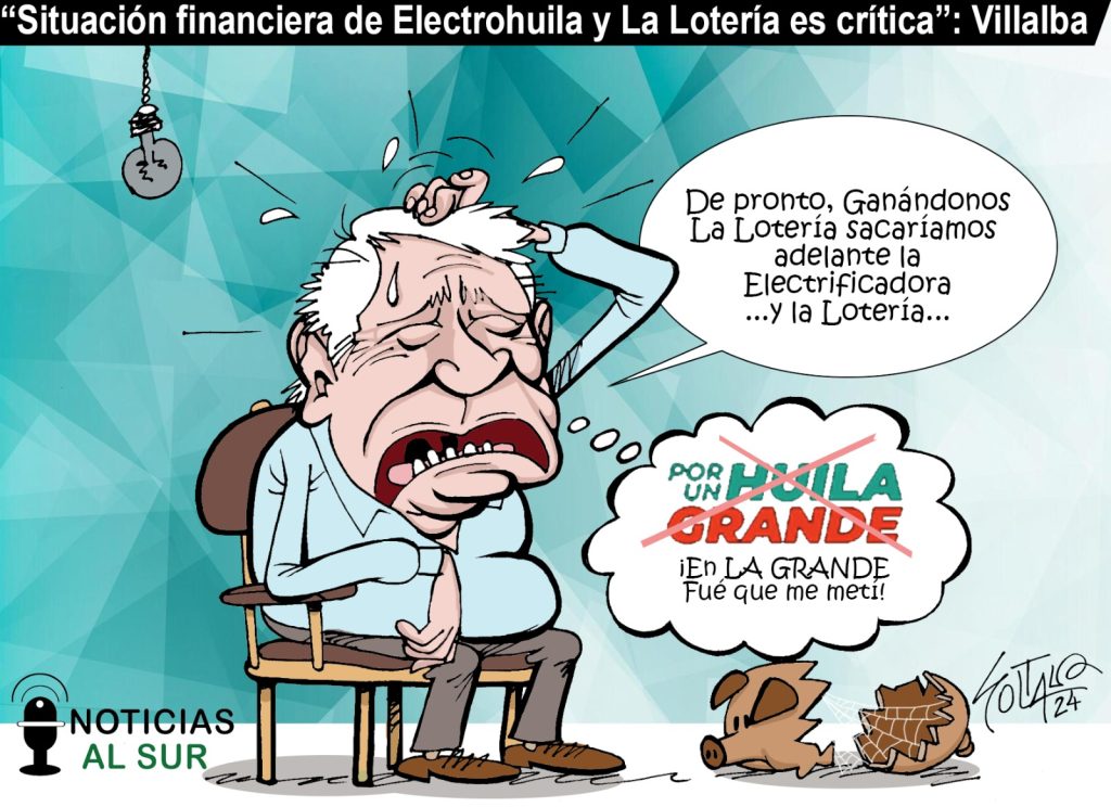 En la Caricatura de la Semana de Jorge Soltau en https://noticiasalsur.co/… «Situación financiera de Electrohuila y la Lotería es crítica»: Villalba