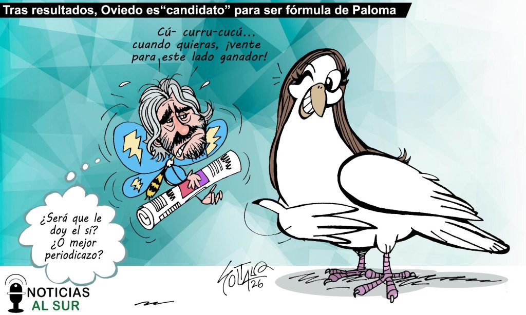 Tras resultados, Oviedo es ‘candidato’ para ser fórmula de Paloma… Caricatura de Soltau en https://noticiasalsur.co/category/opinion/